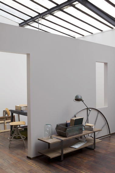 Le style industriel du salon s'enveloppe d'une ambiance feutrée avec cette peinture bleu brute un duo de couleurs bleu sur les murs un ocre pour peindre le soubassement pour un salon style rétro je fais une cuisine ouverte sur le salon et salle a manger. Les éléments de cuisine sont en laqué. Idée très intéressante pour votre salle à manger.