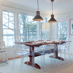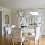 Plusieurs nuances de la couleur taupe s'harmonisent dans cette salle à manger au style rustique chaleureux. Les chaises de salle à manger se doivent d'être confortables et stylées. L'ensemble meuble vasque et miroir en bois contemporain et détails en inox suffisent à agrandir l'espace.